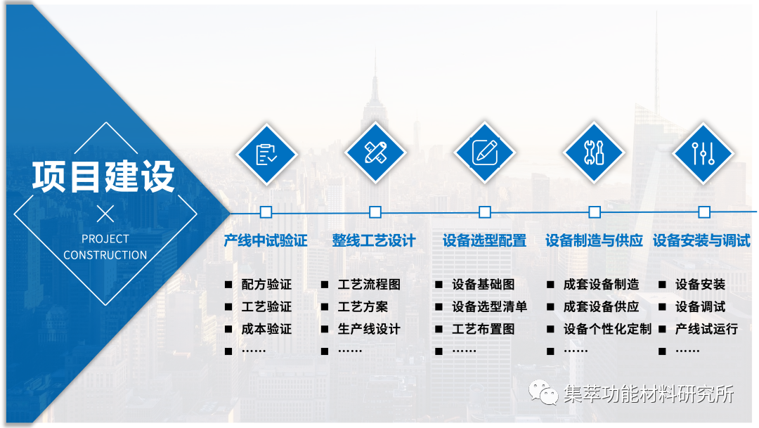 本服務(wù)階段為客戶提供包括中試生產(chǎn)驗(yàn)證、整線工藝設(shè)計(jì)、土建基礎(chǔ)設(shè)計(jì)、設(shè)備選型配置、專業(yè)成套設(shè)備生產(chǎn)制造、成套設(shè)備安裝調(diào)試、生產(chǎn)線試運(yùn)行等服務(wù),實(shí)現(xiàn)“交鑰匙”工程,高效低成本又省心!