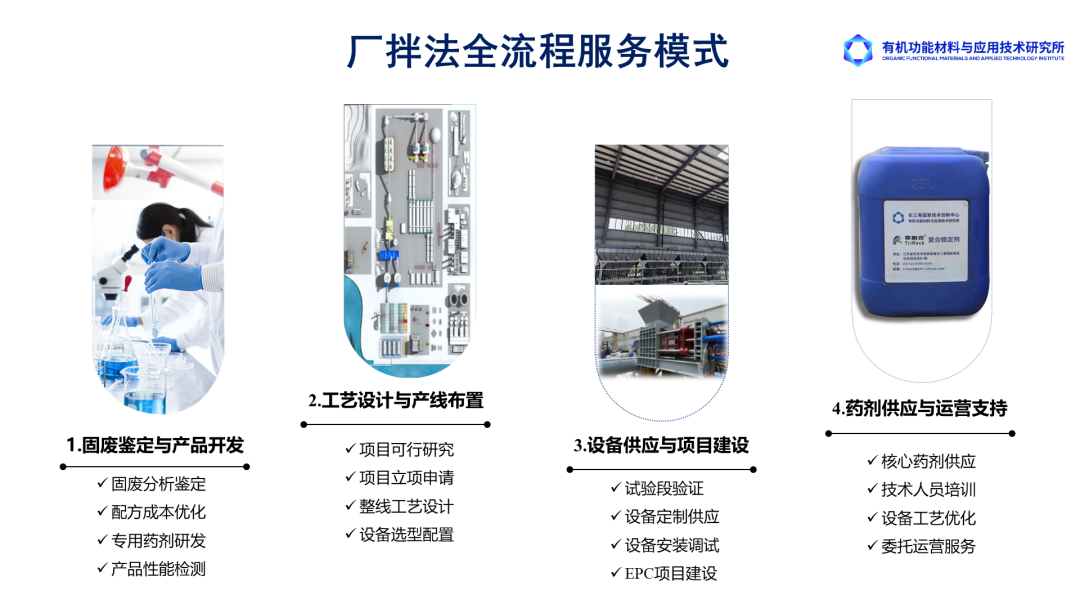 長三角國創(chuàng)中心功能材料所環(huán)保中心前瞻性地聚焦固廢處理問題和道路建設(shè)問題,經(jīng)過長期的研究,形成了針對于各類淤泥質(zhì)固廢、城市固廢、工業(yè)固廢道路應(yīng)用的綜合解決方案——集“關(guān)鍵藥劑+成套裝備+核心技術(shù)”三位一體的一站式服務(wù)。